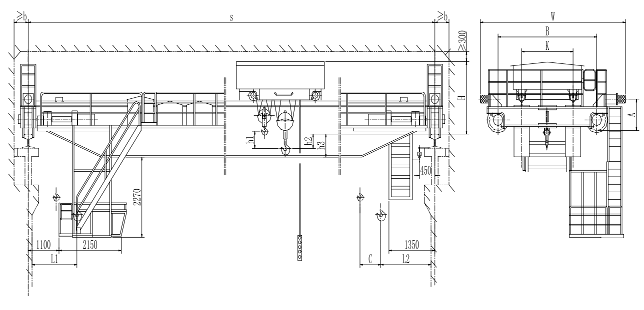 本機(jī)起重量:10t;跨度:22.50m;工作級(jí)別:A6 ;